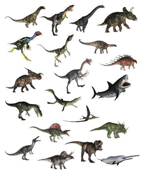 Conjunto de dinosaurios en fondo blanco - 3D render