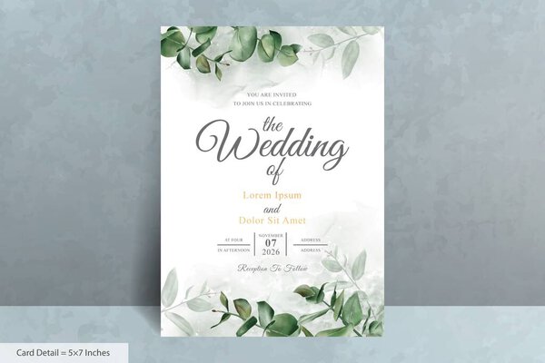 Hochzeitseinladungskarte mit Eukalyptusblättern Vorlage