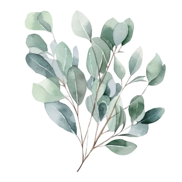 Stock Illustration Aquarellzeichnung. handgezeichnete Eukalyptus- und Olivenblätter und Zweige. Clip-Art für Hochzeitsdekoration isoliert auf weißem Hintergrund