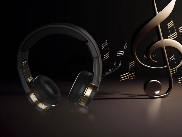 Headphone Creative. Headphone 3D rendering on black background. Sound system creative on black background.